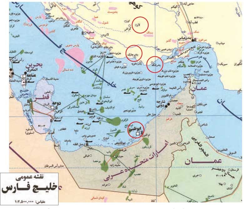 ابوموسی – تنب بزرگ و کوچک – تقریبا ۴۵۰ کیلومتر